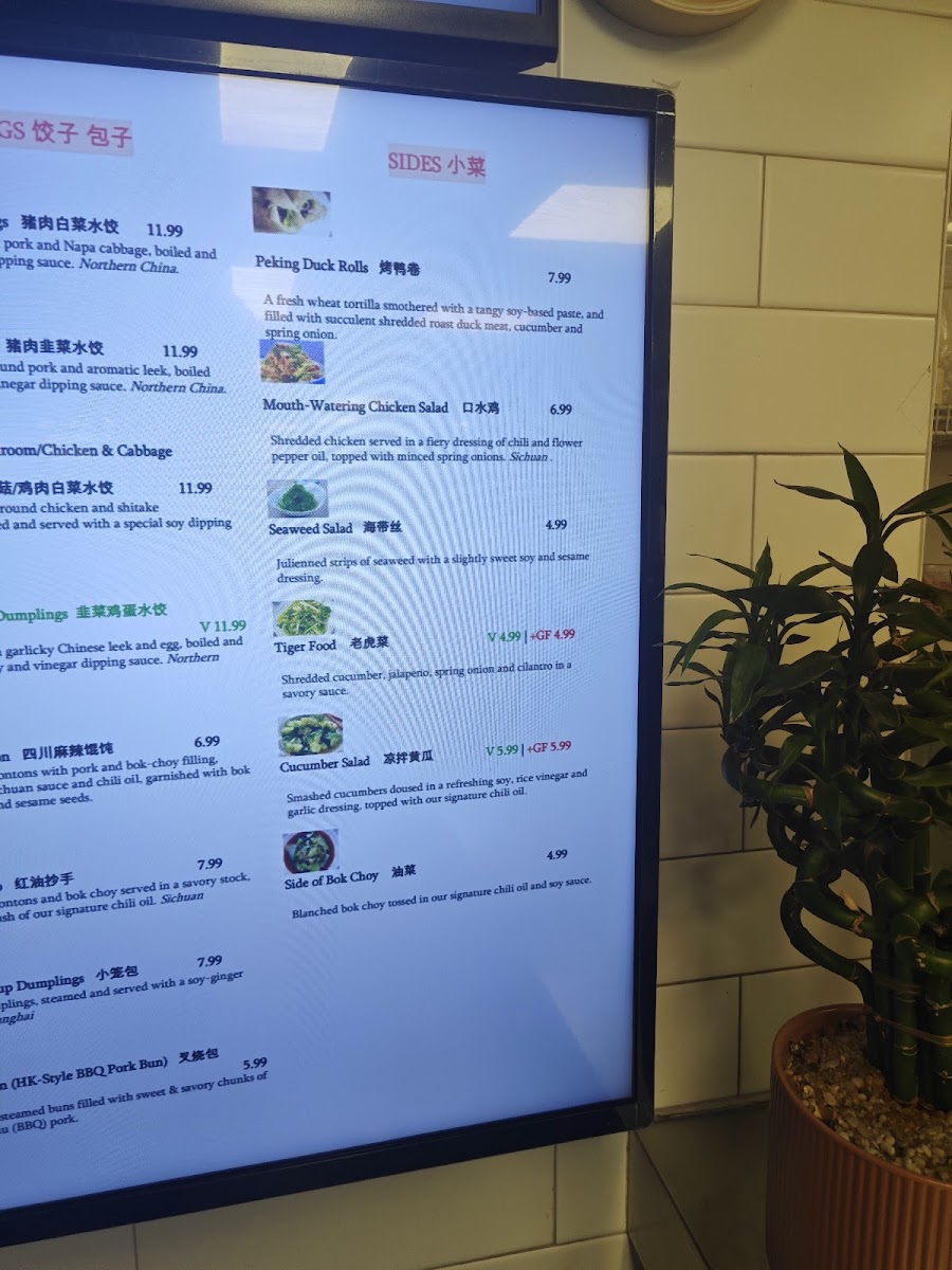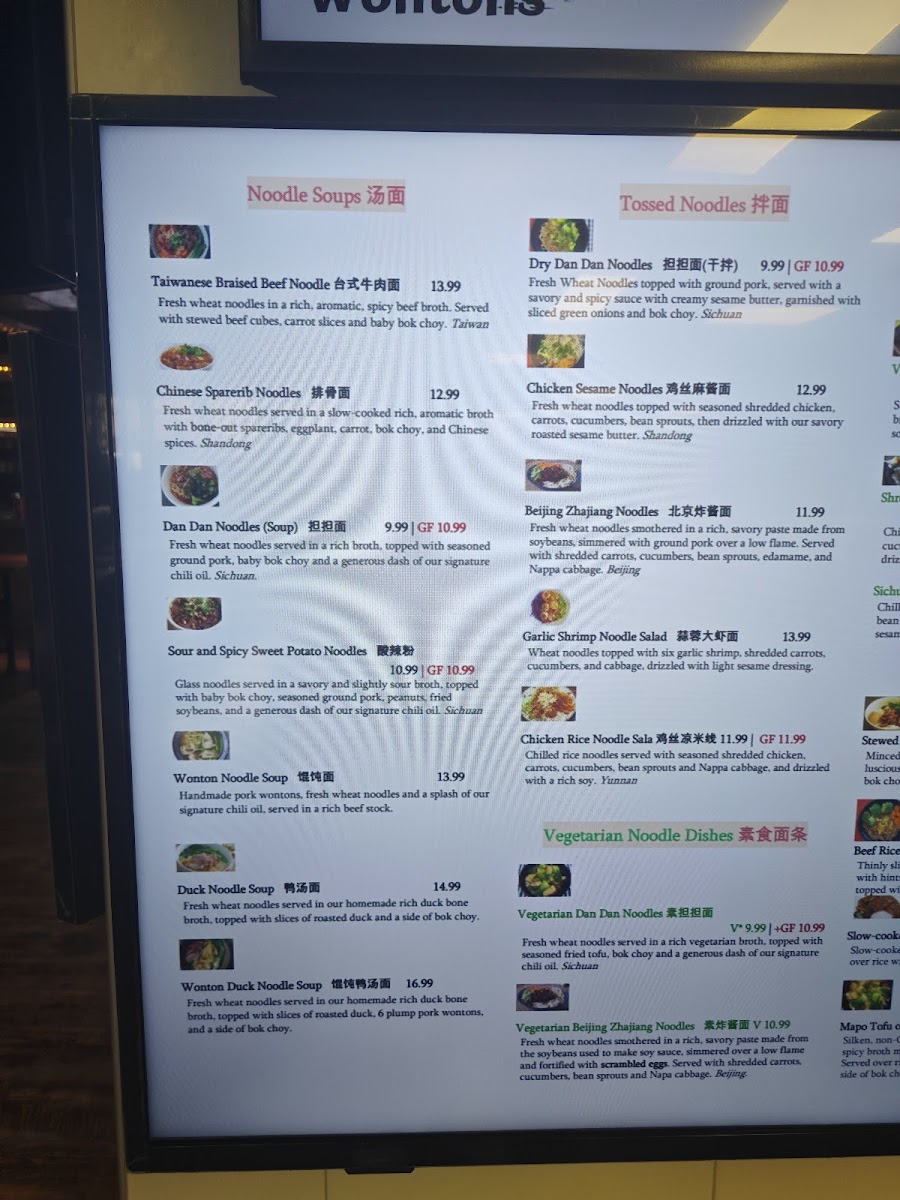 You’ll find a variety of dumplings, from classic pork and leek to vegetarian options, perfect for sharing or enjoying as a light meal. Noodle soups, such as Taiwanese beef noodle soup and stewed sparerib noodle soup, provide warm, filling choices that complement the inviting atmosphere. Cold dishes like the refreshing cucumber salad and new items such as garlic shrimp noodle salad offer balance alongside the richer flavors.